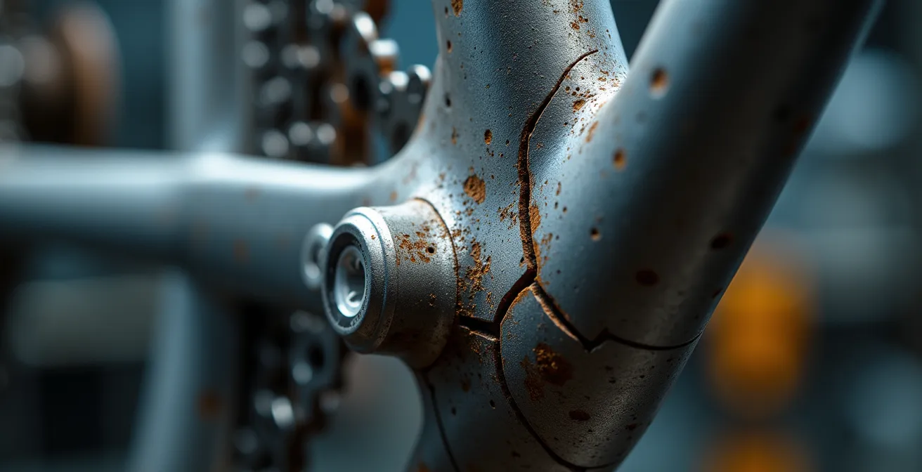 La verdadera amenaza de un kit eléctrico no es un cable mal conectado, sino el fallo catastrófico y repentino de un cuadro de bicicleta no diseñado para soportar las nuevas cargas.