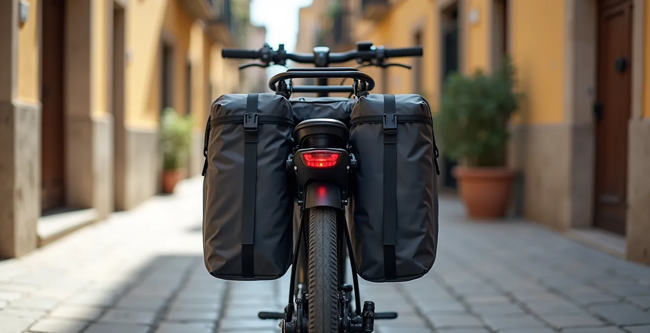 La pregunta parece sencilla: ¿cómo elegir un buen portabultos para una bicicleta eléctrica? La respuesta habitual se centra en la compatibilidad de sistemas como MIK o Racktime y en la capacidad de carga indicada en la etiqueta. Sin embargo, para un cicloturista que planea cargar 25 kg de equipaje en una e-bike que ya supera los 25 kg, este enfoque es peligrosamente incompleto. El verdadero desafío no es encontrar un accesorio que «encaje», sino un componente estructural que no falle bajo estrés continuo.